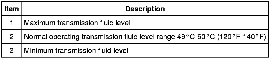 The transmission fluid level reading on the transmission fluid level indicator will differ depending on operating and ambient temperatures. The correct reading should be within the normal operating temperature range.