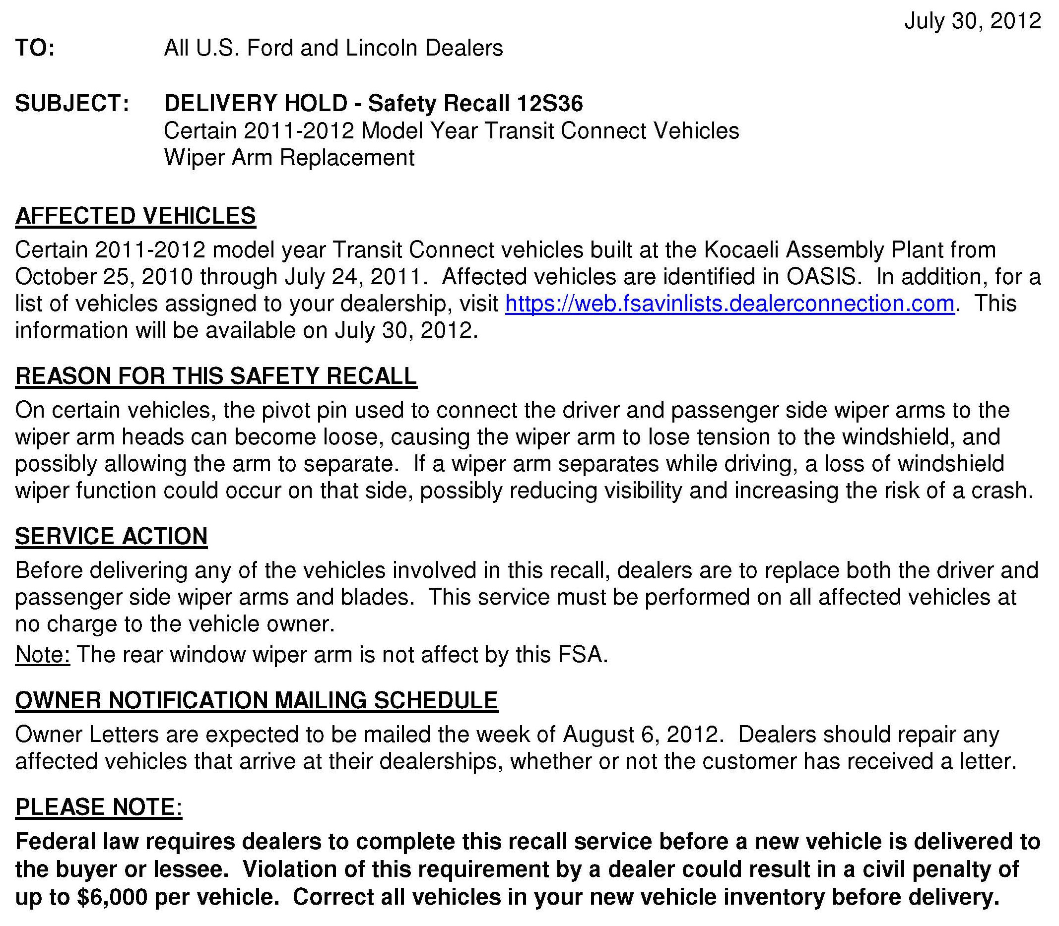 Recall - Wiper Arm Replacement