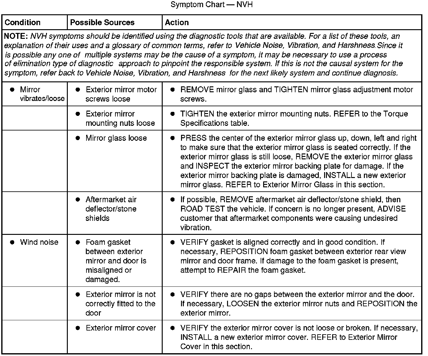 Symptom Chart - NVH