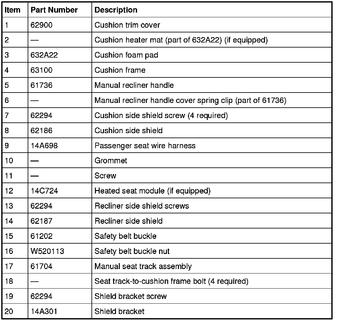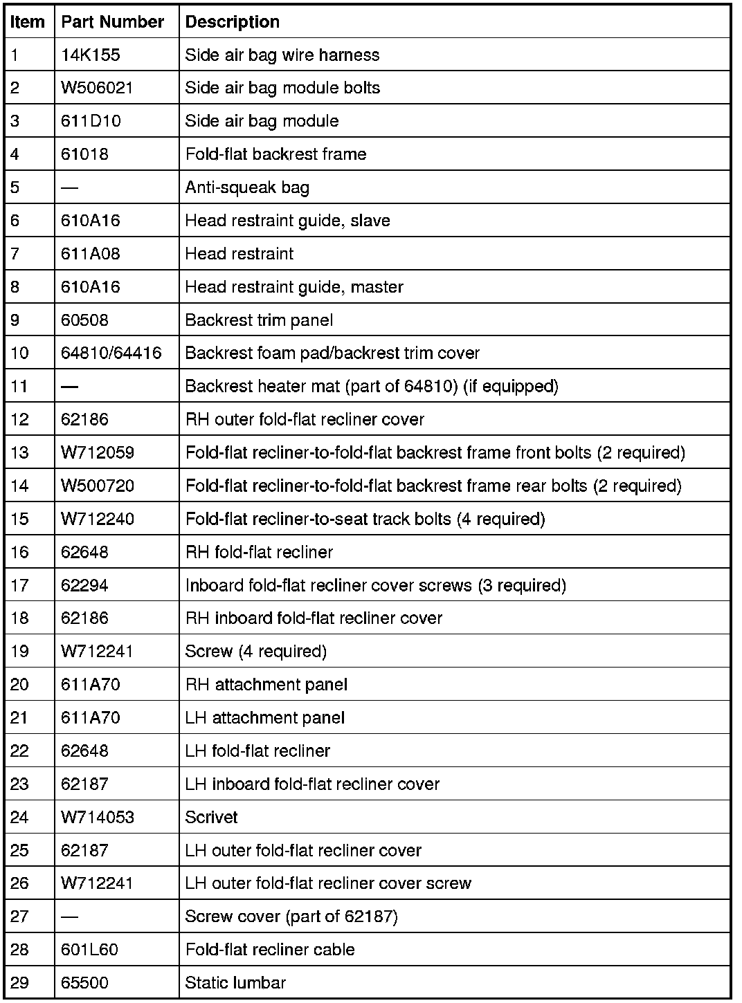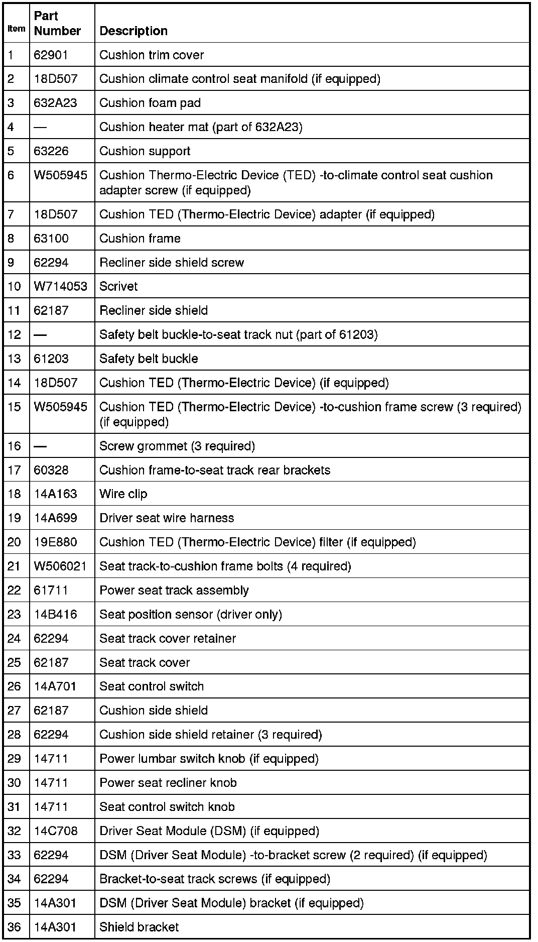 NOTE: To install a new Occupant Classification System Module (OCSM) or an Occupant Classification Sensor (OCS) weight sensor bolt, refer to the appropriate procedure in Restraints and Safety Systems &/or Air Bag Systems.