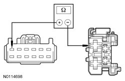 - Measure the resistance between driver seat control switch C3016-11, circuit CPS29 (WH/BN), harness side and driver seat recliner motor C368-2, circuit CPS29 (WH/BN), harness side.