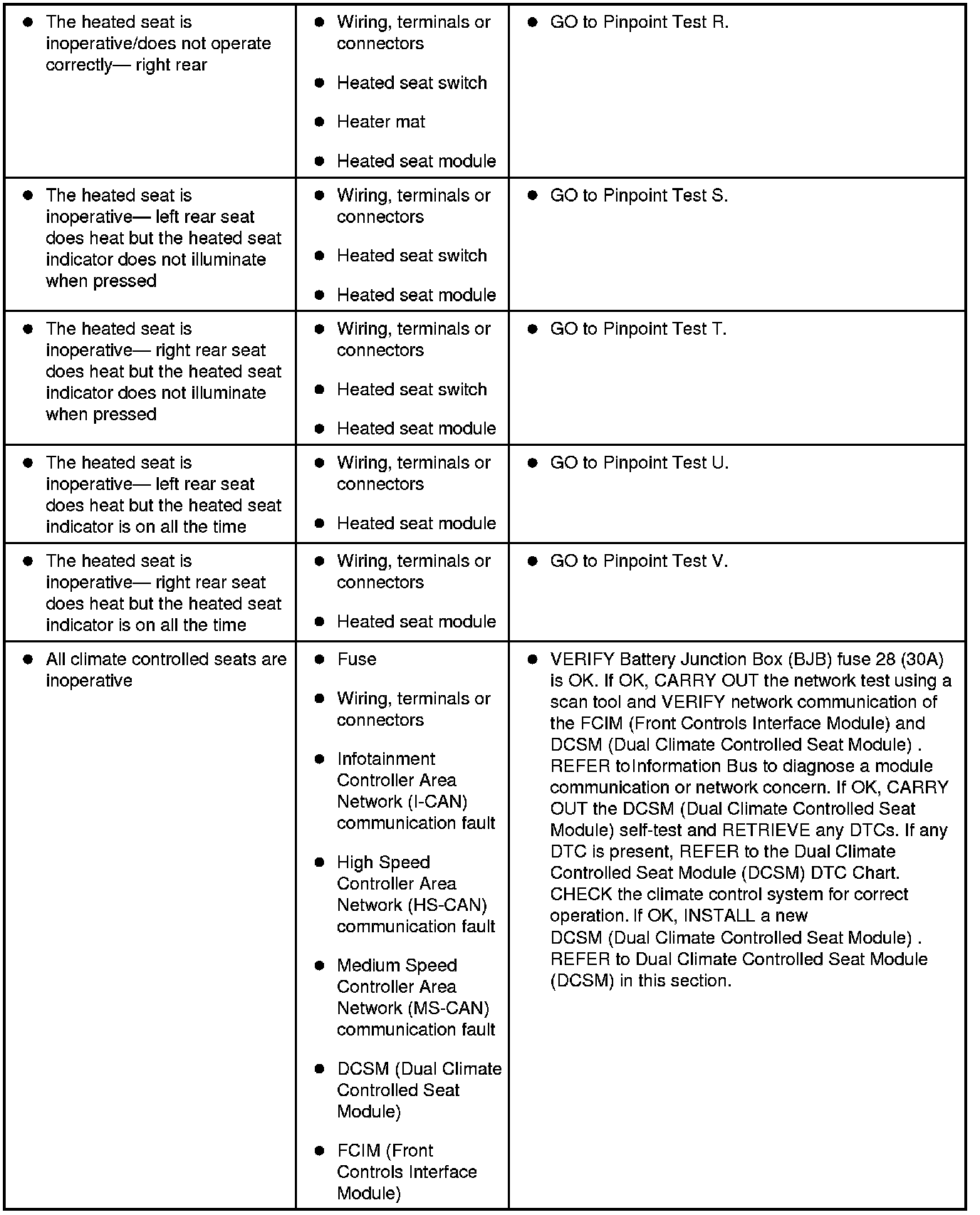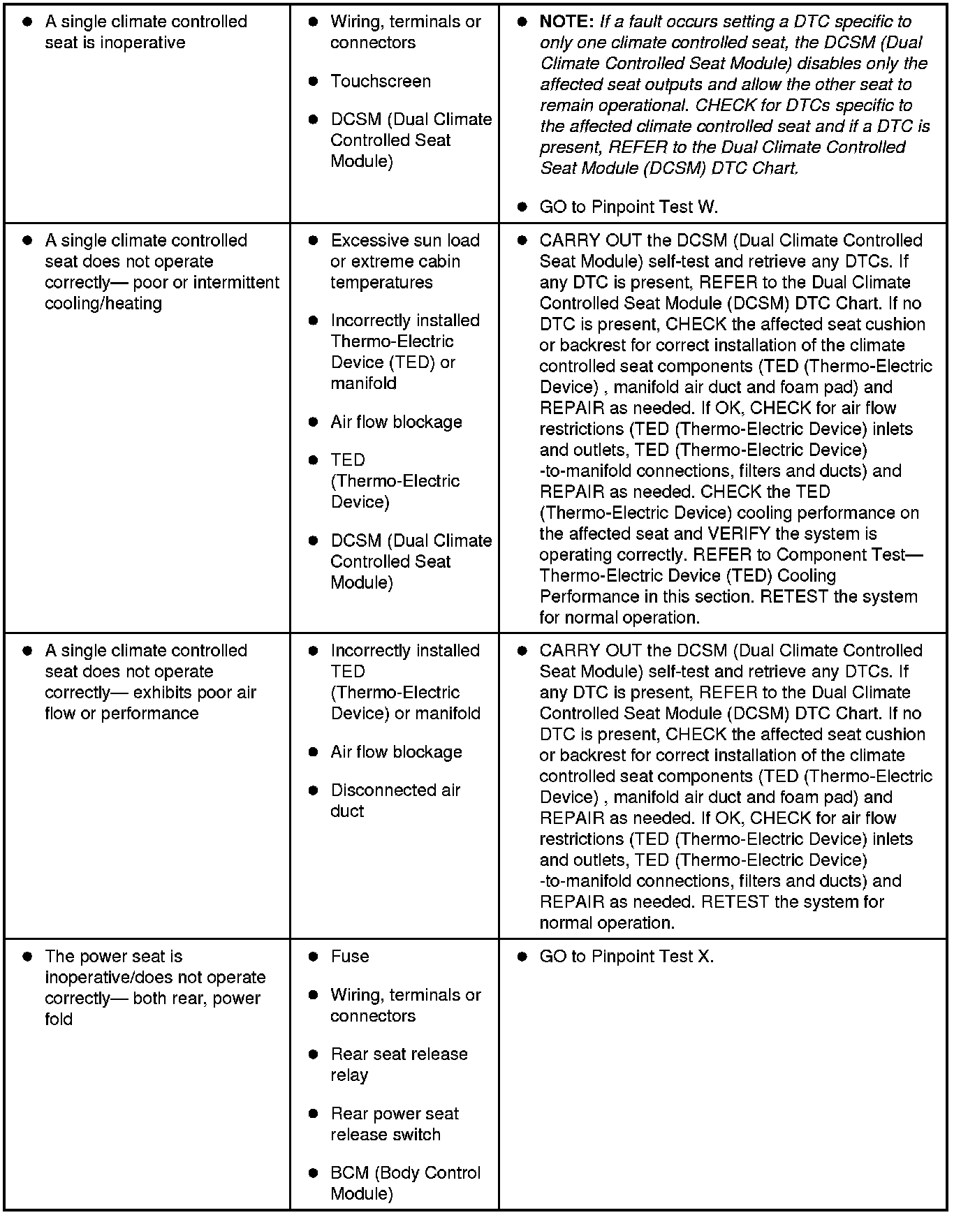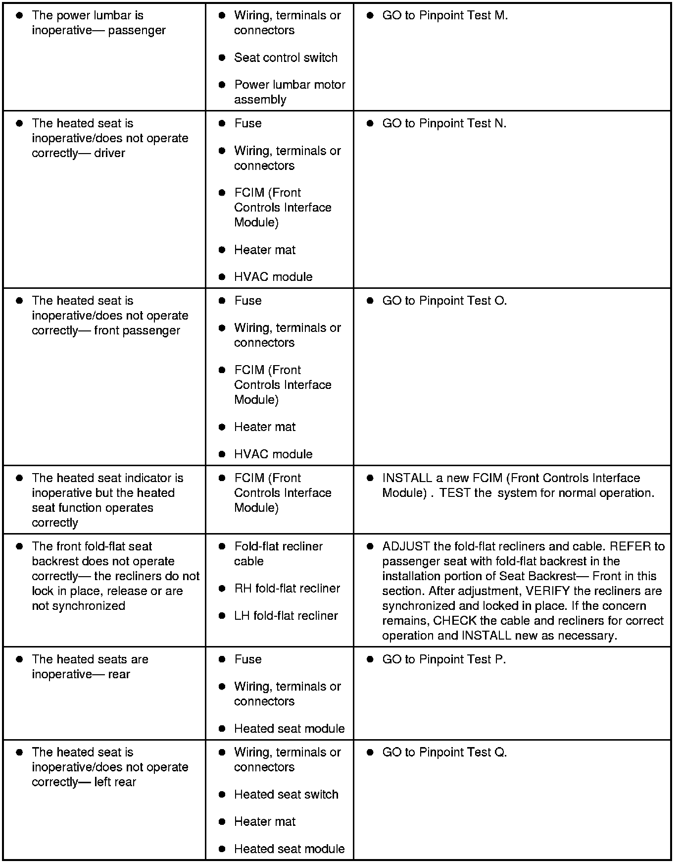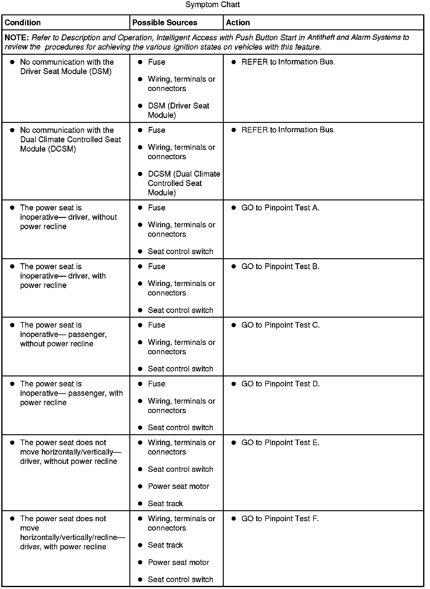 Refer to Inspection and Verification Inspection and Verification and the Symptom Chart for direction to the appropriate pinpoint test Symptom Related Diagnostic Procedures.