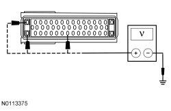 - Measure the voltage between the ABS module, harness side and ground as follows: