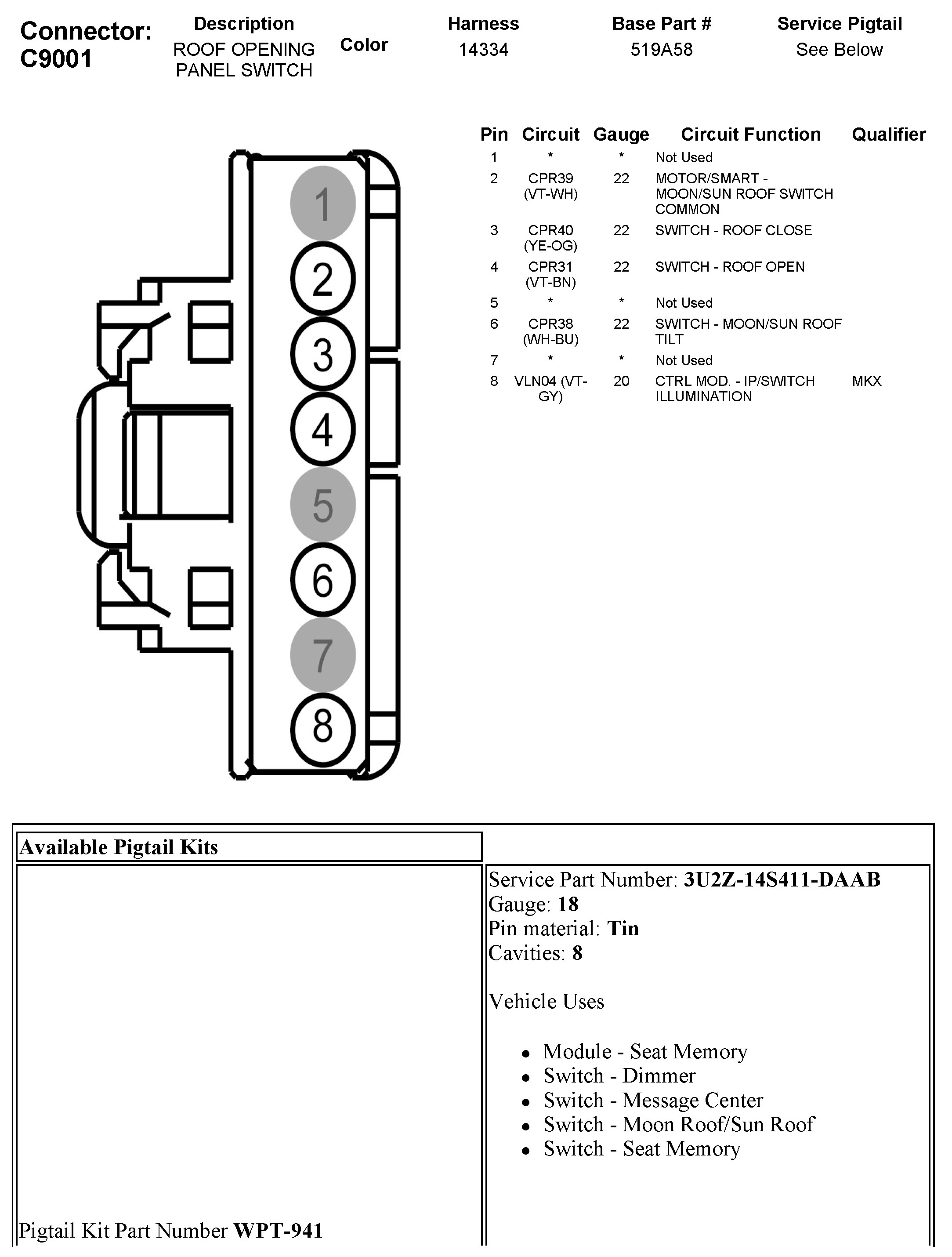 Sunroof / Moonroof Switch
