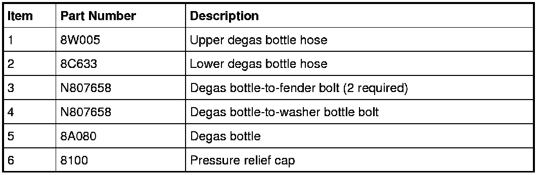 Fill the degas bottle with a 50/50 mix of engine coolant and distilled water.