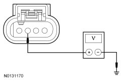 - Measure the voltage between grille shutter actuator C1651-3, circuit CBB70 (YE/BU), harness side and ground.