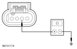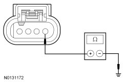 - Measure the resistance between grille shutter actuator C1651-2, circuit VDN06 (WH/GN), harness side and ground.