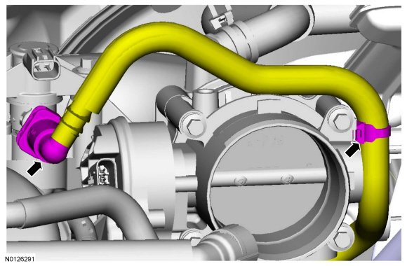 8. Disconnect the crankcase ventilation hose from the Positive Crankcase Ventilation (PCV) valve.