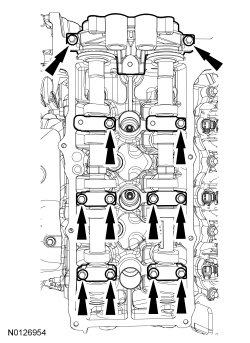 74. NOTICE: While removing the valve cover do not apply excessive force to the Variable Camshaft Timing (VCT) oil control solenoid or damage may occur.