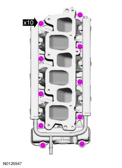 65. NOTICE: If the engine is repaired or replaced because of upper engine failure, typically including valve or piston damage, check the intake manifold for metal debris. If metal debris is found, install a new intake manifold. Failure to follow these instructions can result in engine damage.