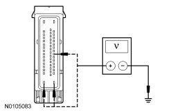 - Measure the voltage between the ABS module C135-1, circuit SBB05 (GY/RD), C135-8, circuit CBB92 (GN/WH) and C135-32, circuit SBB43 (BU/RD), harness side and ground.
