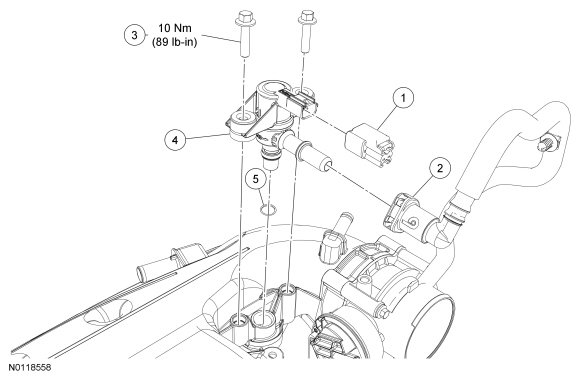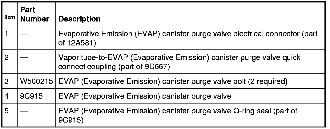 4. Remove the bolts and the canister purge valve. Remove and discard the O-ring seal.