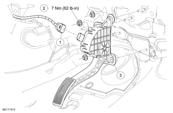1. NOTE: To prevent setting DTCs, make sure the ignition switch is in the OFF position prior to disconnecting the accelerator pedal electrical connectors.