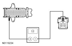 - Measure the resistance between start/stop switch C2195-2, circuit CPK36 (VT/BN), harness side and ground.