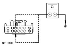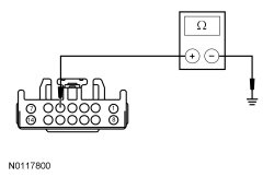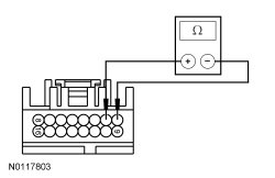 - Measure the resistance between ground and HSWM (Heated Steering Wheel Module) C2406-5, circuit VHS73 (GN/BN), harness side.