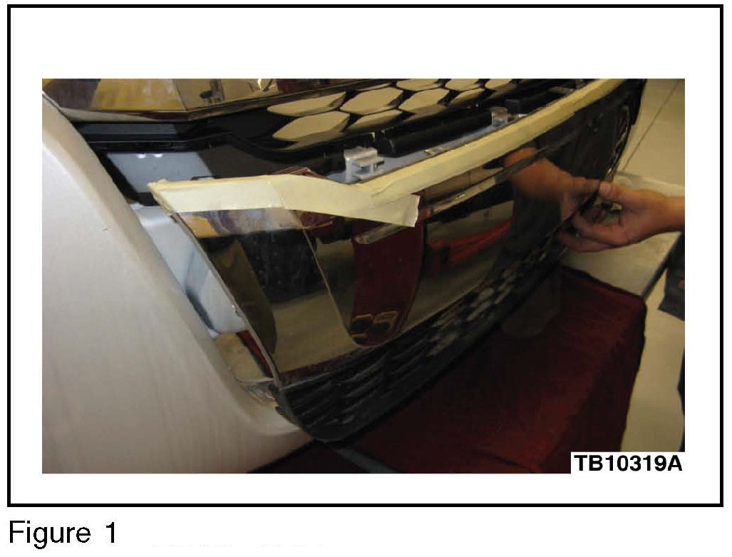 1. Apply 2 layers of masking tape or equivalent to the top edge of the lower radiator grille bar to protect chrome finish. (Figure 1)