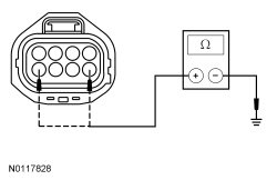 - Measure the resistance between AWD (All-Wheel Drive) relay module C4379-5, circuit CCF21 (VT/WH), harness side and chassis ground; and between AWD (All-Wheel Drive) relay module C4379-8, circuit RCF21 (WH/VT), harness side and chassis ground.