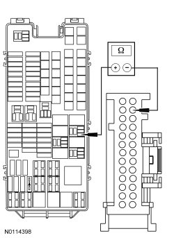 - Measure the resistance between rear window defrost relay socket pin 1, circuit CH122 (WH/OG), and HVAC module- EMTC (Electronic Manual Temperature Control) C2357-25 or HVAC module- DATC (Dual Automatic Temperature Control) C228A-25, circuit CH122 (WH/OG), harness side.