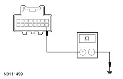 - For a RH concern, measure the resistance between the right exterior mirror C622-16, circuit GD140 (BK/GN), harness side and ground.