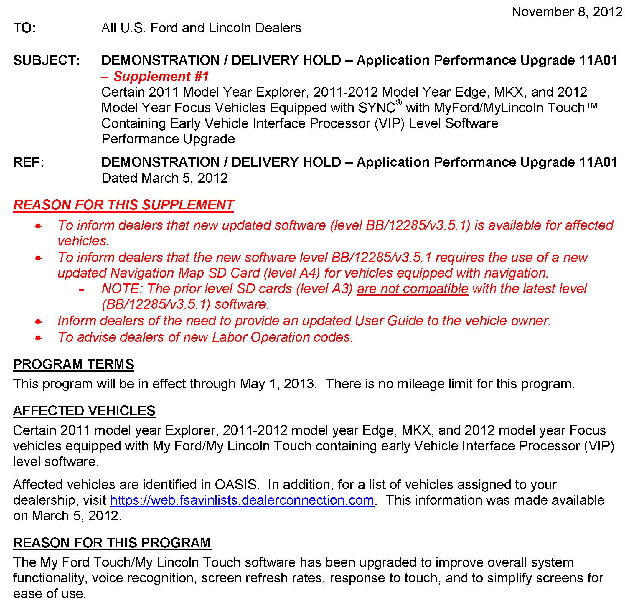 Campaign - SYNC(R), MyFord/MyLincoln Touch(R) Upgrade