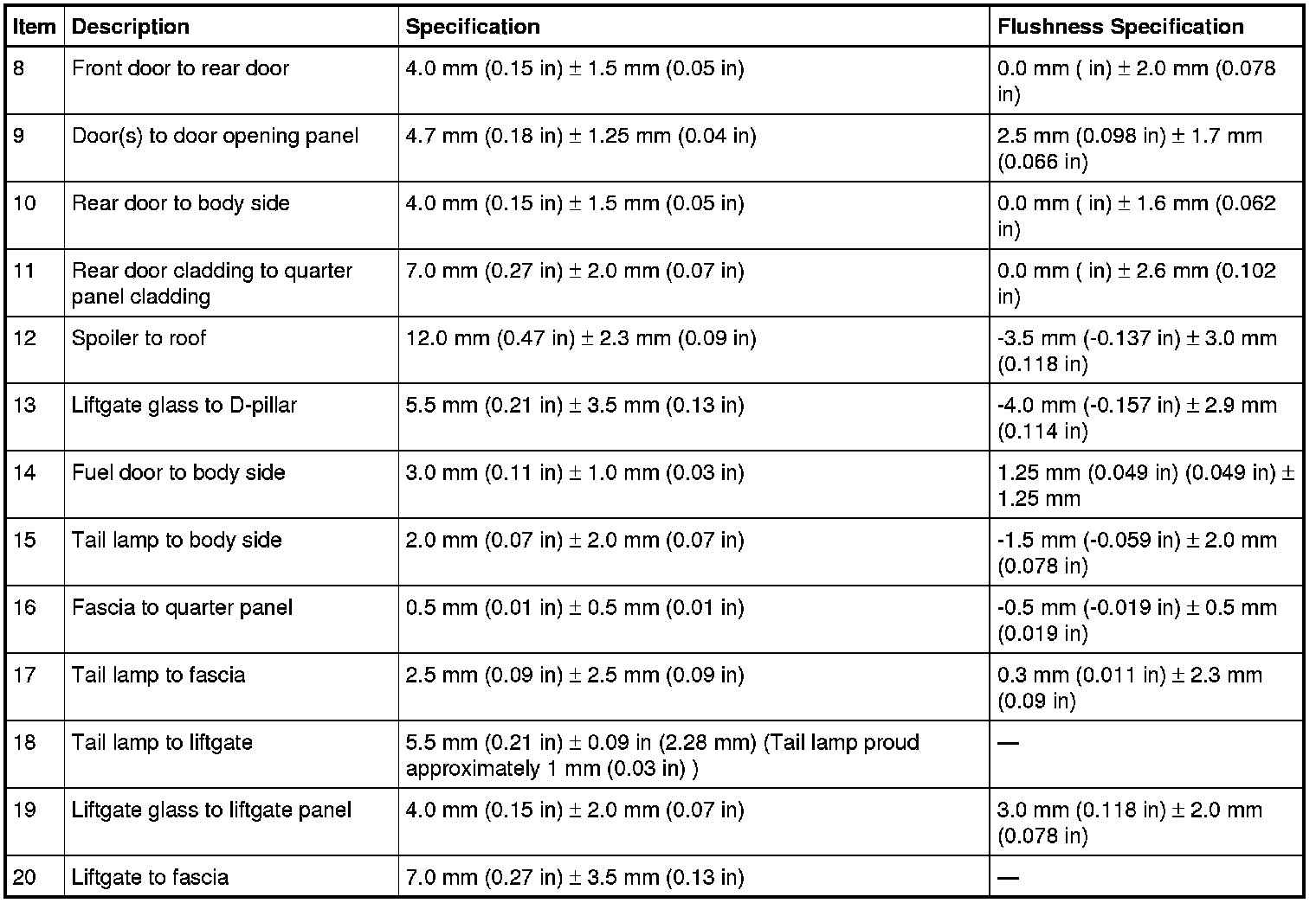 Body Side Closure Dimensions