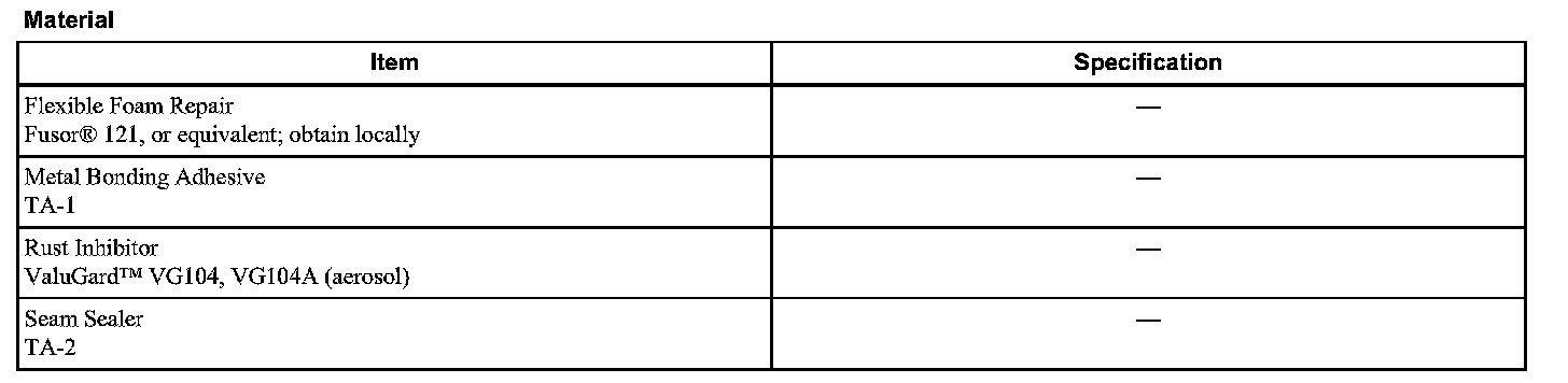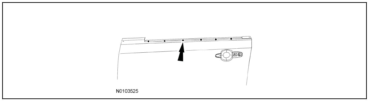 17. Apply rust inhibitor inside the door to all hem areas and upper beltline area. For additional information, refer to Restoring Corrosion Protection Following Repair.