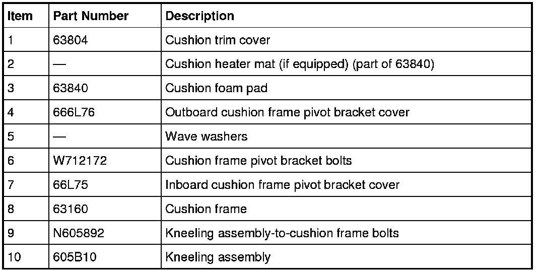 2. Remove the 2 kneeling assembly-to-cushion frame bolts. Remove the kneeling assembly.