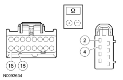 - NOTICE: Connect the ohmmeter with the positive lead to pin 2 and the negative lead to pin 4 when measuring. Ohmmeter leads incorrectly connected can result in false readings and lead to incorrect identification of components that are not faulty.
