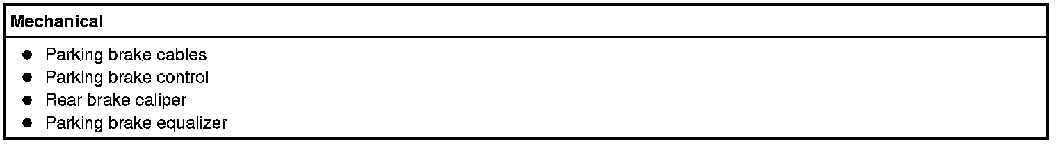 Check the operation of the parking brake system with the vehicle on a hoist and the parking brake control fully released. Check for any damaged cables and install new components as necessary.