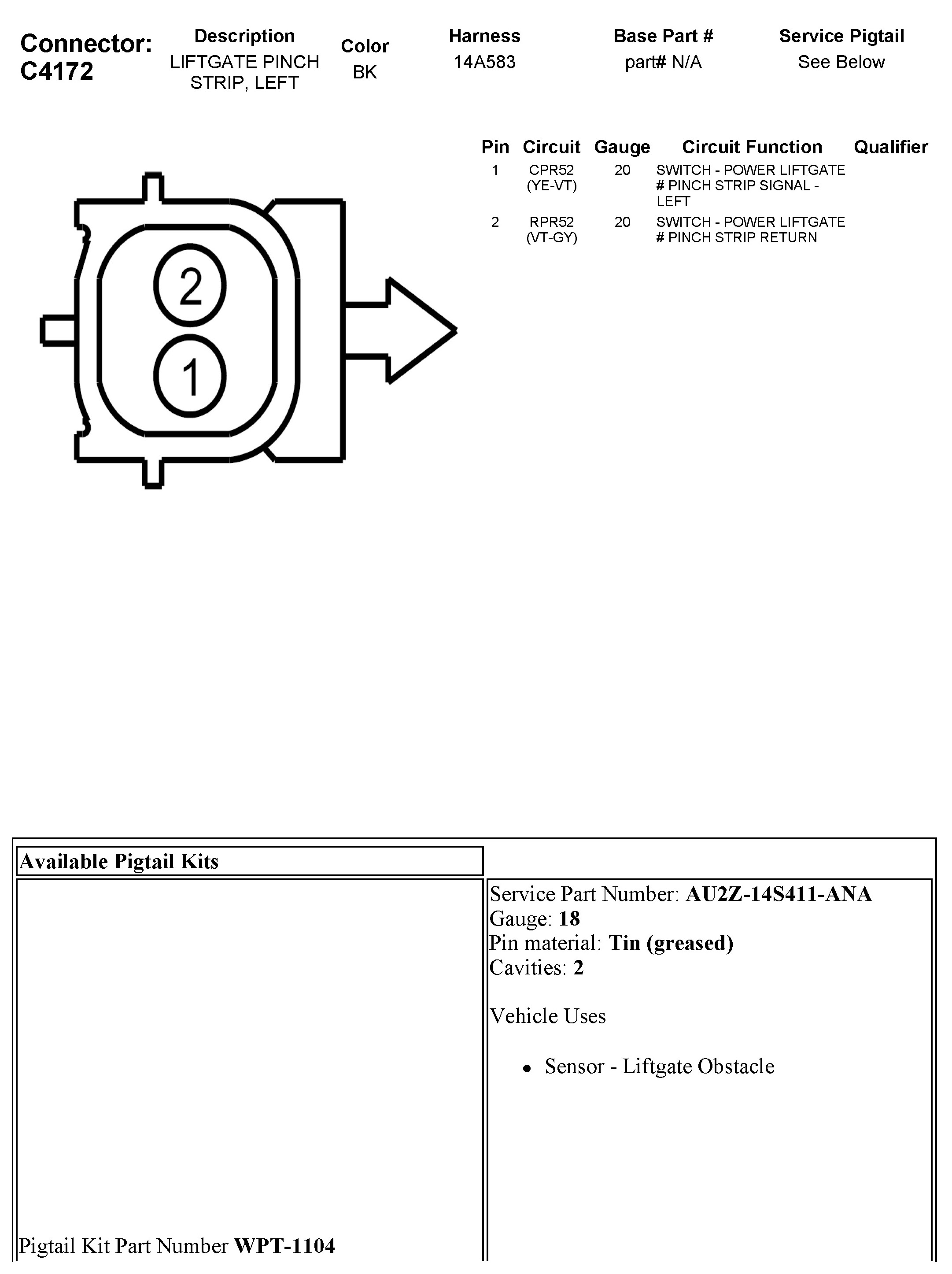 C4172 Liftgate Pinch Strip, Left