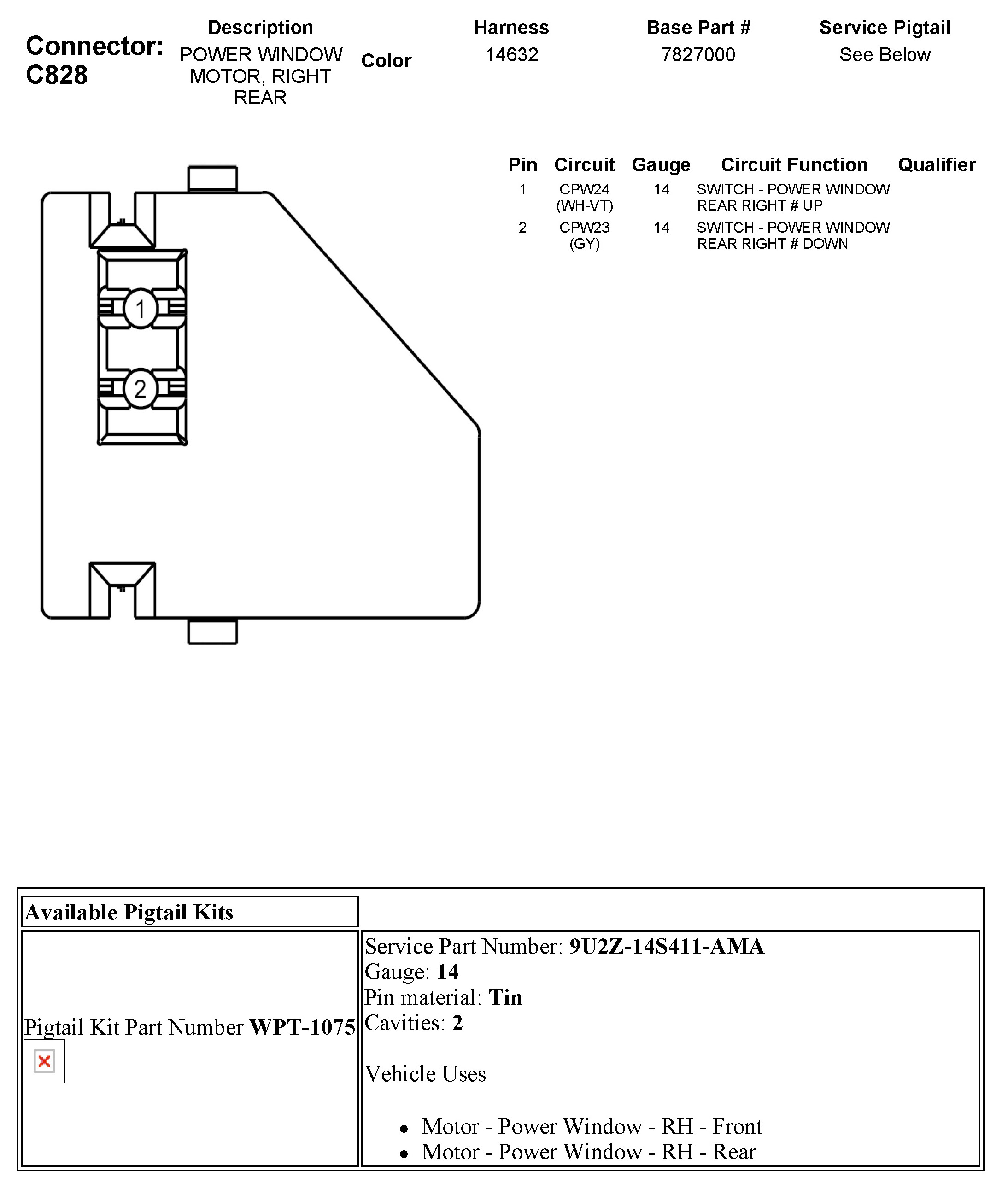 C828 Power Window Motor, Right Rear