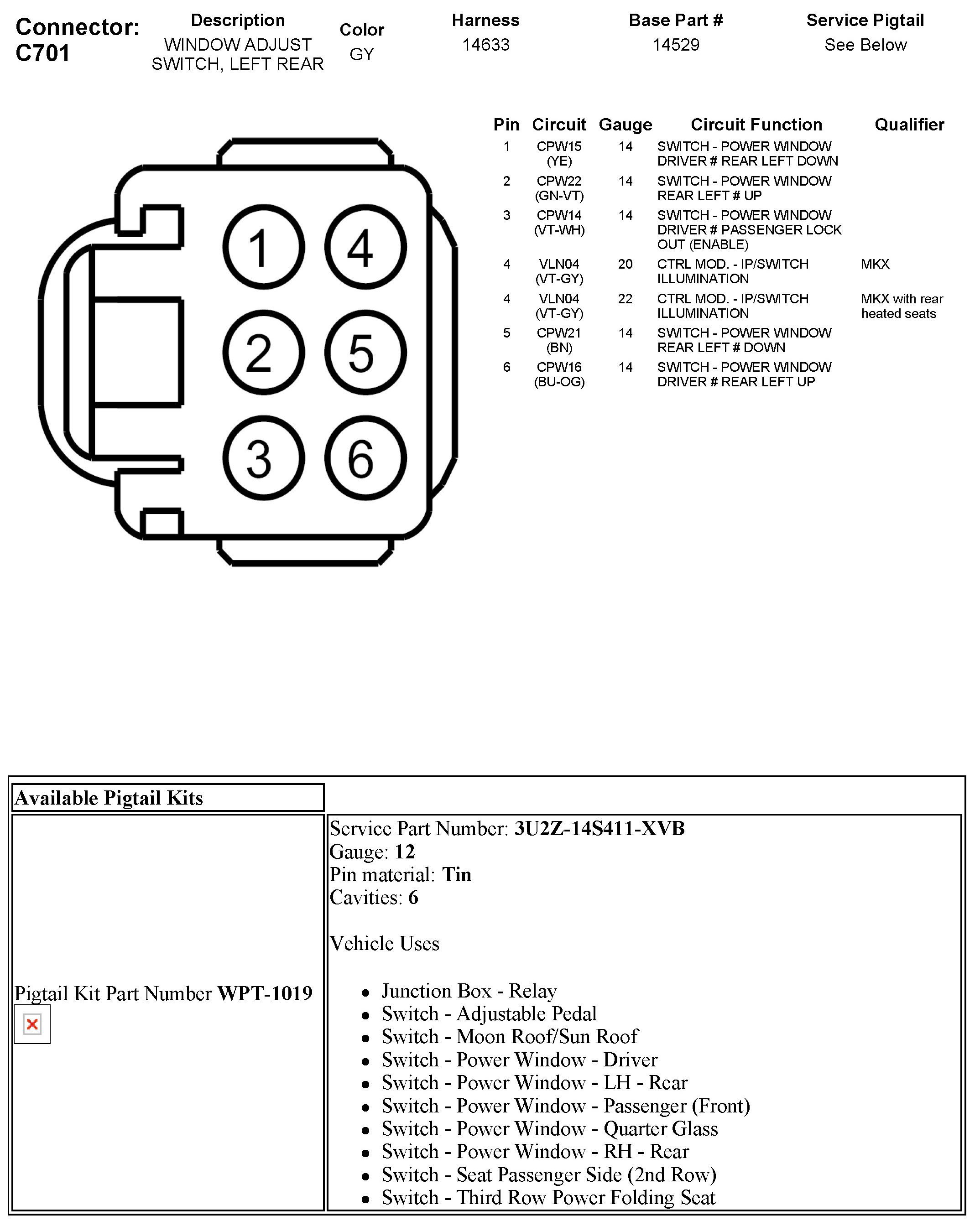 C701 Window Adjust Switch, Left Rear