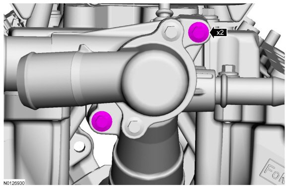 116. Install the 2 thermostat housing-to-lower intake manifold bolts.
