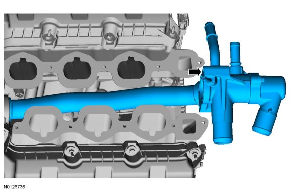 Using a new O-ring seal, install the coolant inlet tube and thermostat assembly.