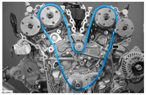 14. NOTE: Removal of the VCT (Variable Camshaft Timing) oil control solenoid will aid in the removal of the primary timing chain.