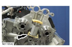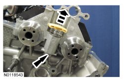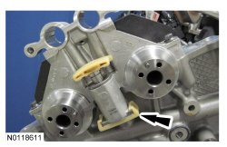 13. NOTE: Removal of the VCT (Variable Camshaft Timing) oil control solenoid will aid in the removal of the primary timing chain.