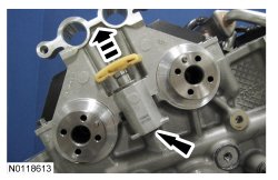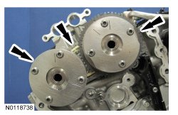 13. Assemble the 2 LH VCT (Variable Camshaft Timing) assemblies and the LH secondary timing chain.