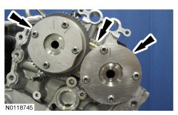 22. Remove and discard the 2 RH VCT (Variable Camshaft Timing) assembly bolts.