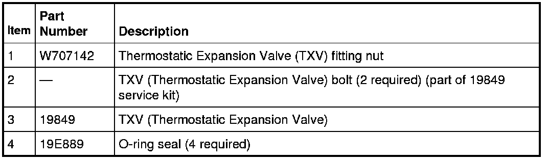NOTE: The O-ring seals used on this vehicle are not interchangeable with all similarly sized O-ring seals used on other Ford products. Use only the O-ring seals specified for this vehicle in the Ford master parts catalog.