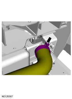 6. Release the upper radiator hose clamp and disconnect the upper radiator hose from the radiator.