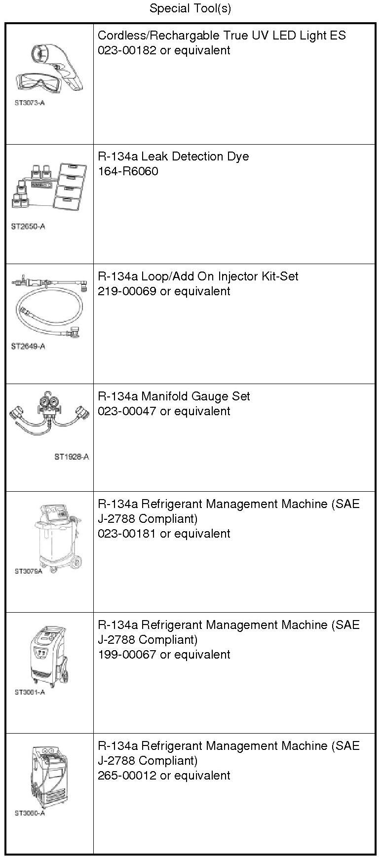 NOTE: Fluorescent refrigerant system dye is added to the refrigerant system at the factory to assist in refrigerant system leak diagnosis using a Rotunda-approved ultraviolet blacklight. It is not necessary to add additional dye to the refrigerant system before diagnosing leaks, even if a significant amount of refrigerant has been removed from the system. Additional refrigerant system dye should only be added if more than 50% of the refrigerant system lubricant capacity has been lost due to a fitting separation, hose rupture or other damage.
