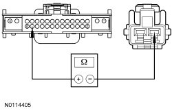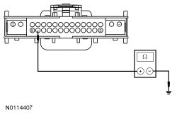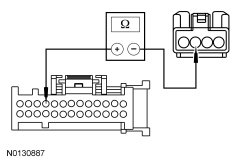 - Measure the resistance between HVAC module- DATC (Dual Automatic Temperature Control) C228B-29, circuit VH414 (GN/BU), harness side and ground.