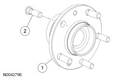 3. Install the wheel bearing and wheel hub. For additional information, refer to Wheel Bearing and Wheel Hub Rear Suspension.