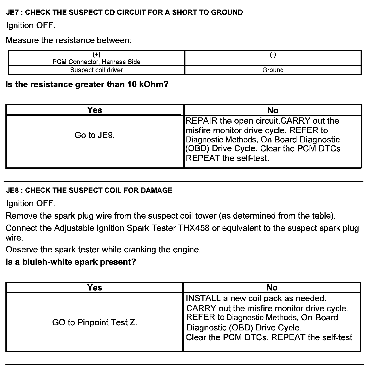 Test JE: Integrated Ignition Coil Pack A, B, or C Failure