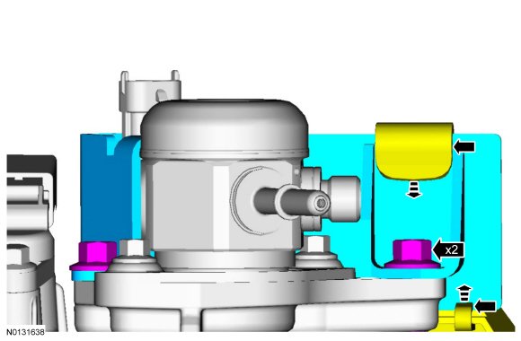 15. NOTE: Use care when installing the fuel injection pump noise insulator. Spreading the openings will aid in installing the fuel injection pump noise insulator and reduce the risk of damage.