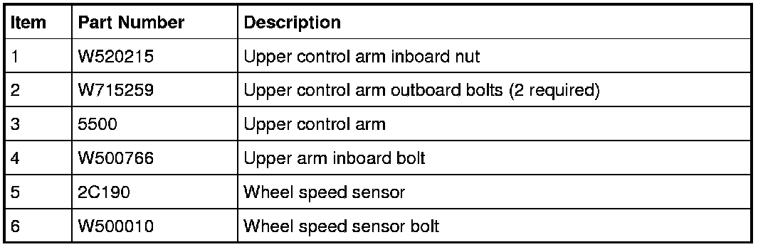 6. Remove and discard the 2 upper control arm outboard bolts.