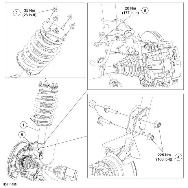 - To install, tighten the new nuts to 225 Nm (166 lb-ft).