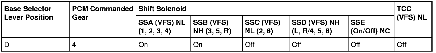 4th Gear (TCC (Torque Converter Clutch) Released) Solenoid Operation Chart