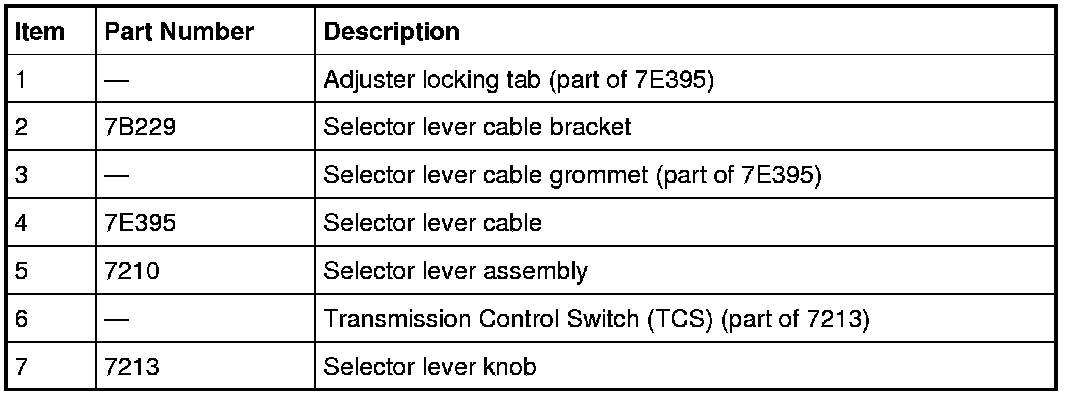 - a selector lever cable that connects the transaxle manual control lever to the selector lever assembly.