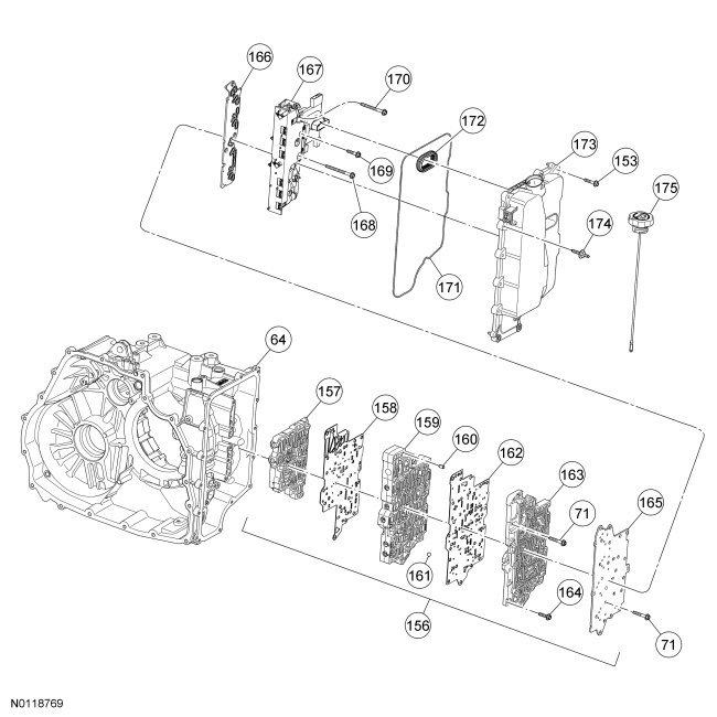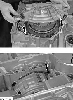 275. NOTICE: Be careful not to pinch the TSS (Turbine Shaft Speed), OSS (Output Shaft Speed) or TR (Transmission Range) sensor wiring harnesses under the valve body, or damage to the wiring harness or connectors may occur.